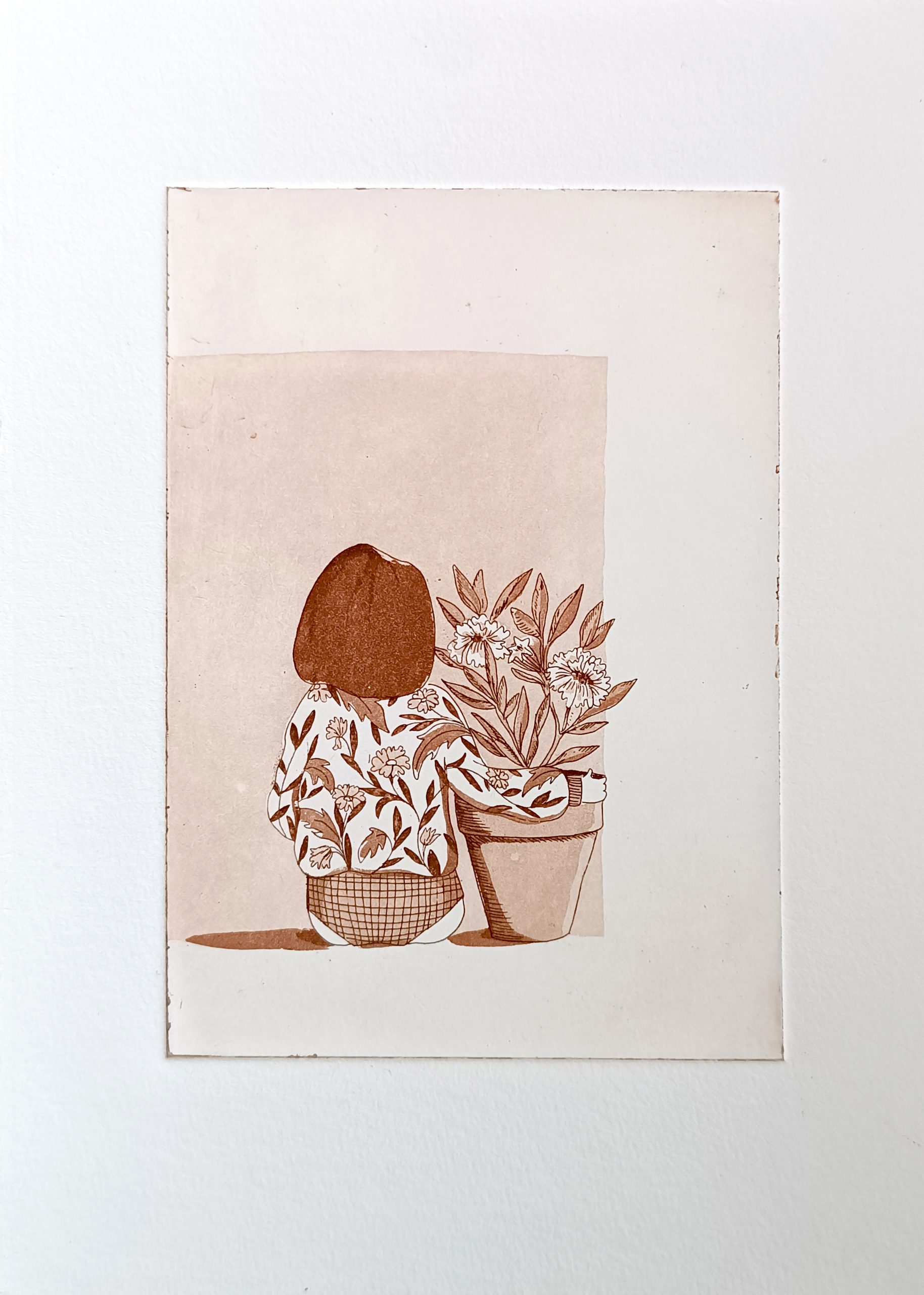 Le cadre n’est pas compris dans la commande. Vous pouvez néanmoins choisir cette option lors de la commande, pour recevoir l’illustration encadrée par mes soins, dans un encadrement kraft 15x21cm.