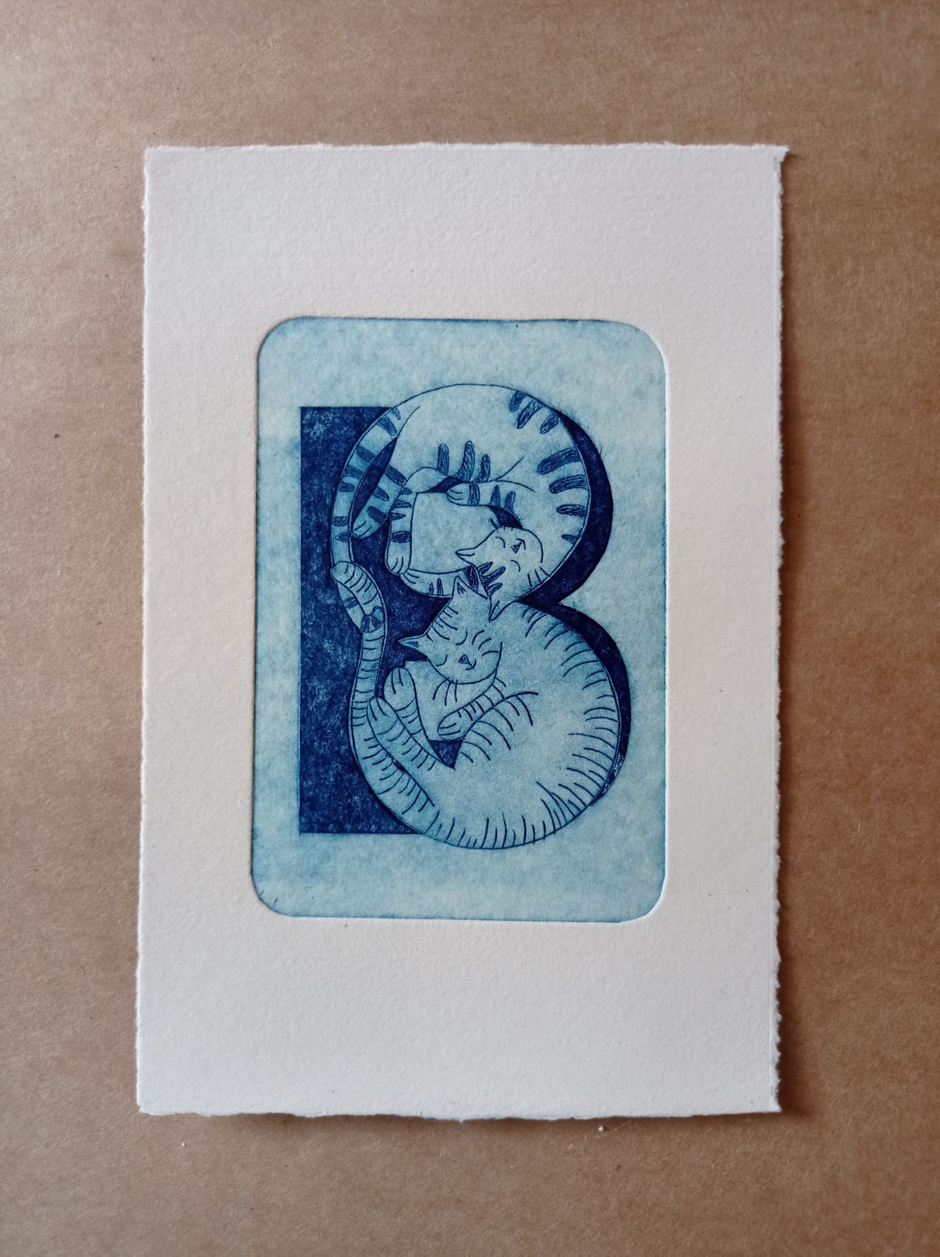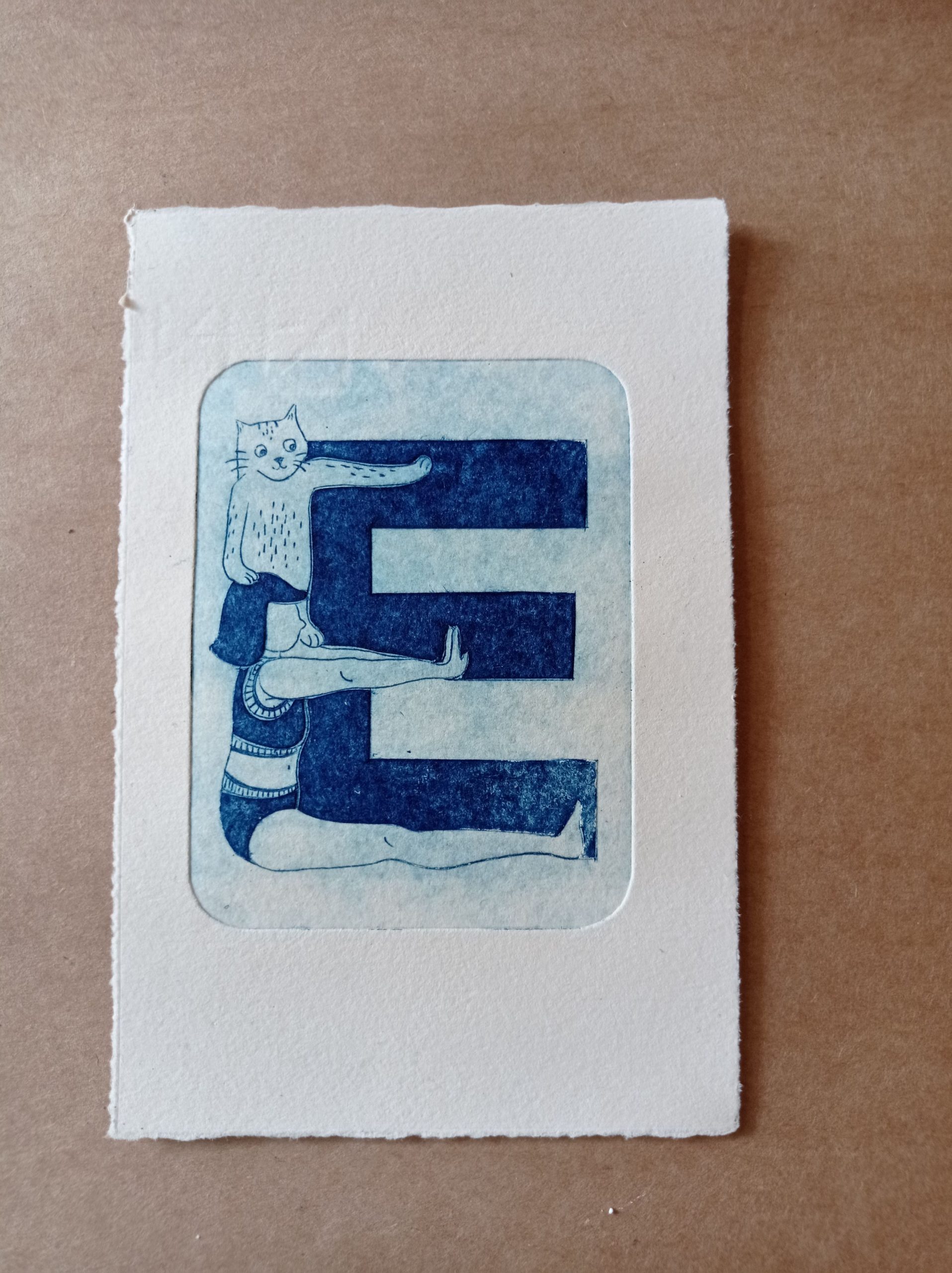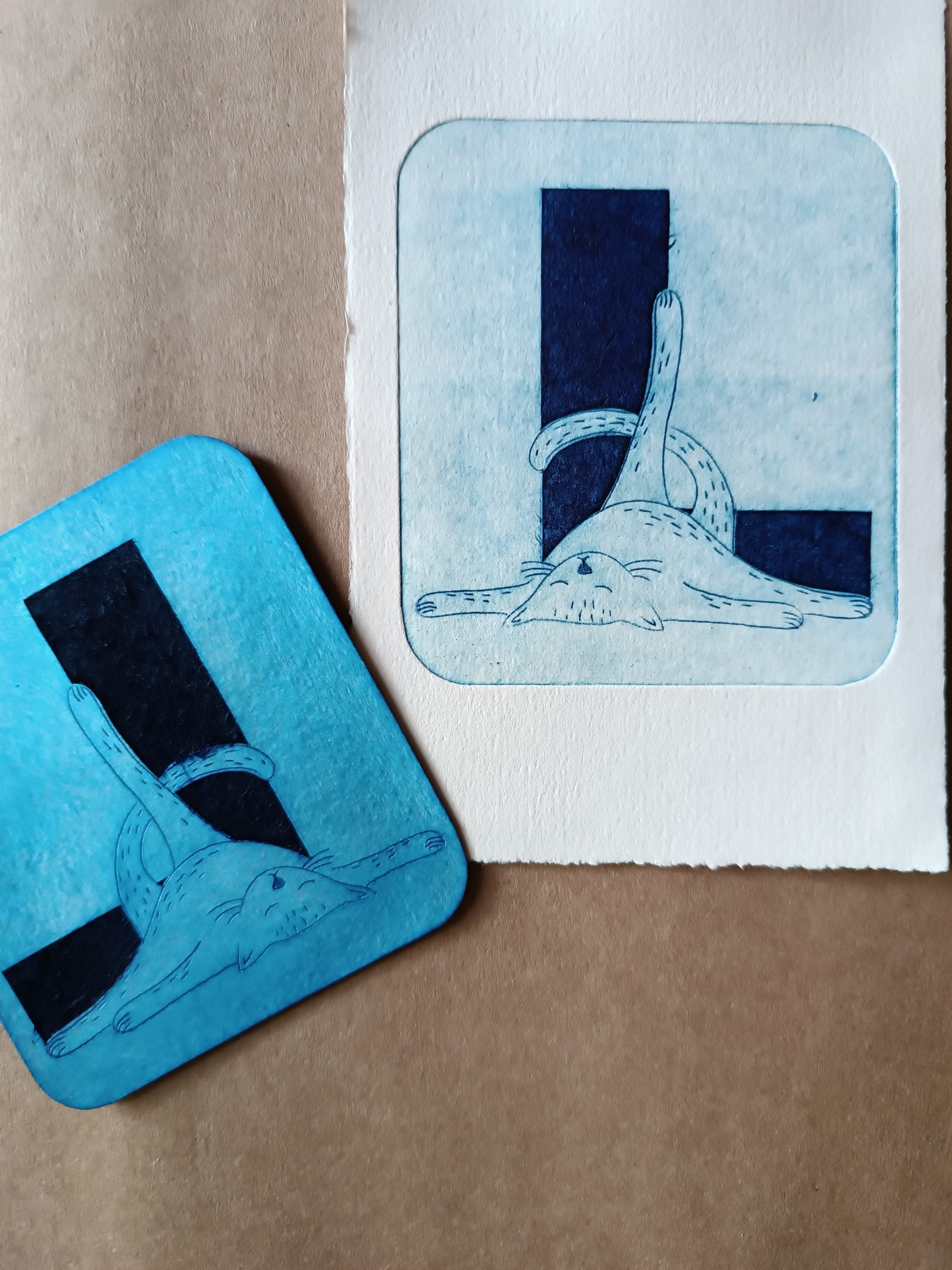 Impression format 10x15cm sur papier Ivoire Fabriano, 270 g/m², à partir d’une matrice en TetraPack.