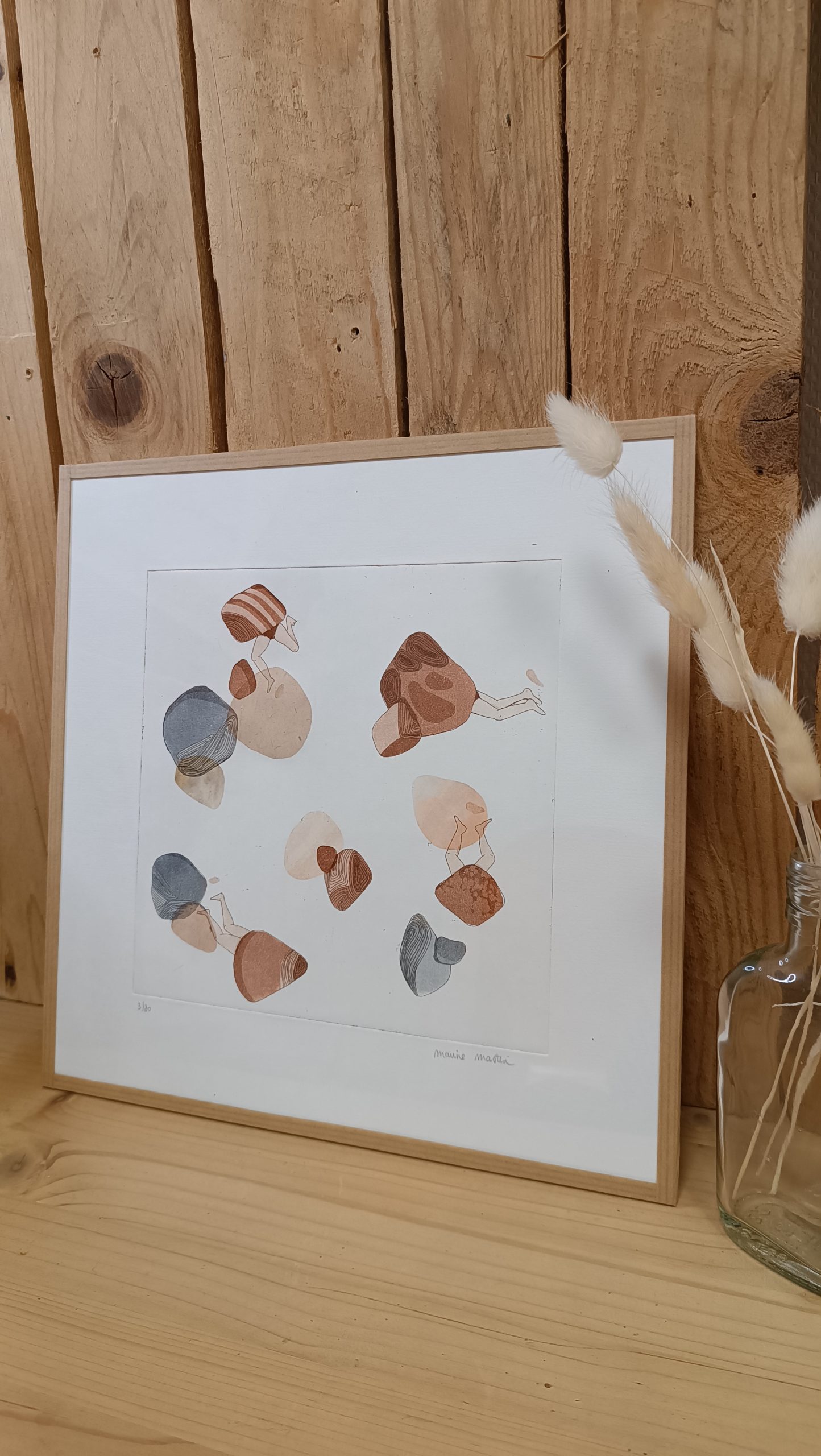 La gravure étant un procédé artisanal produisant des variations lors de l’impression, chaque tirage est donc unique, numéroté et signé.